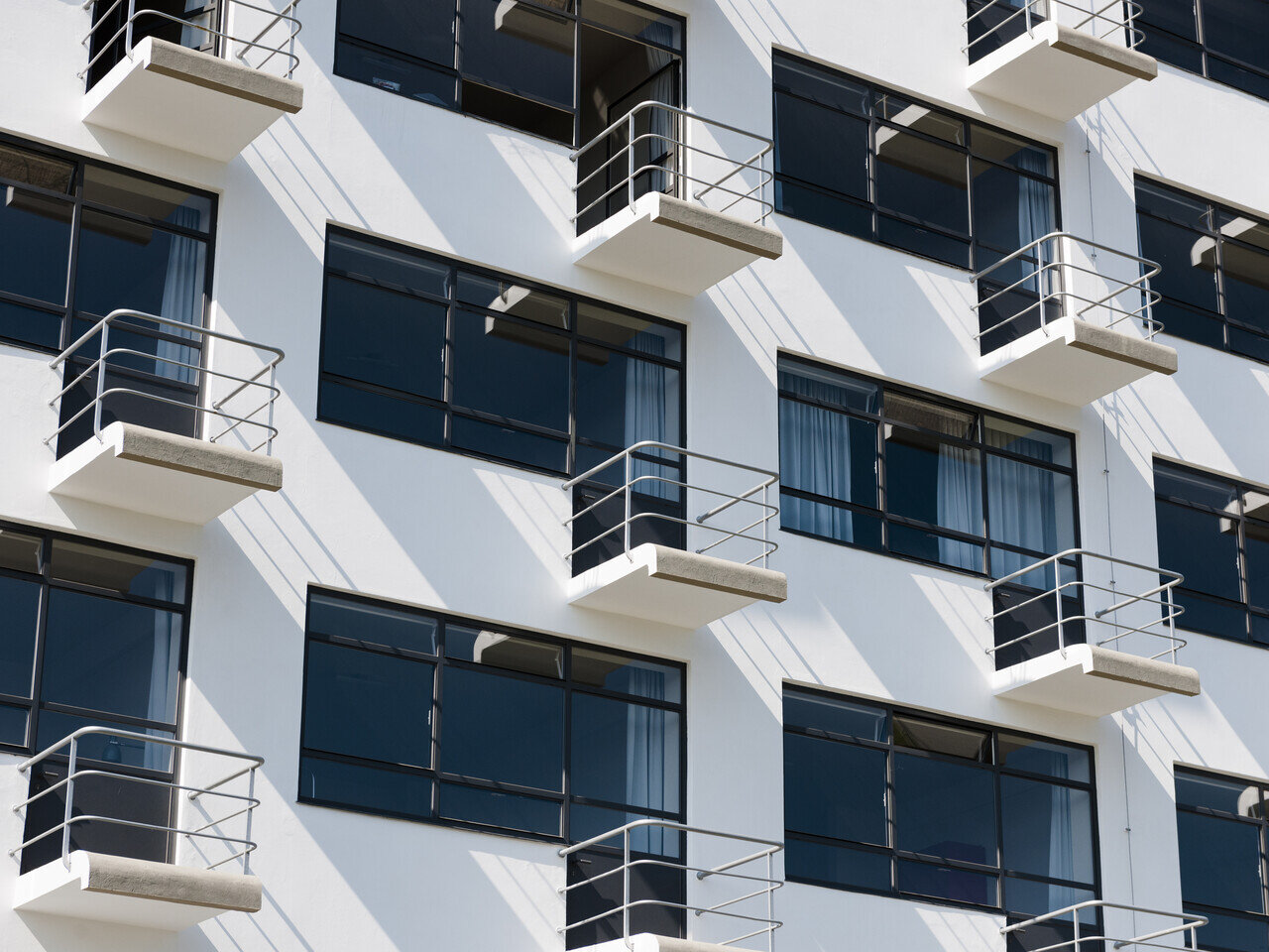 Balkone des Ateliergebäudes, Bauhausgebäude (1925-26), Architekt: Walter Gropius, 2019